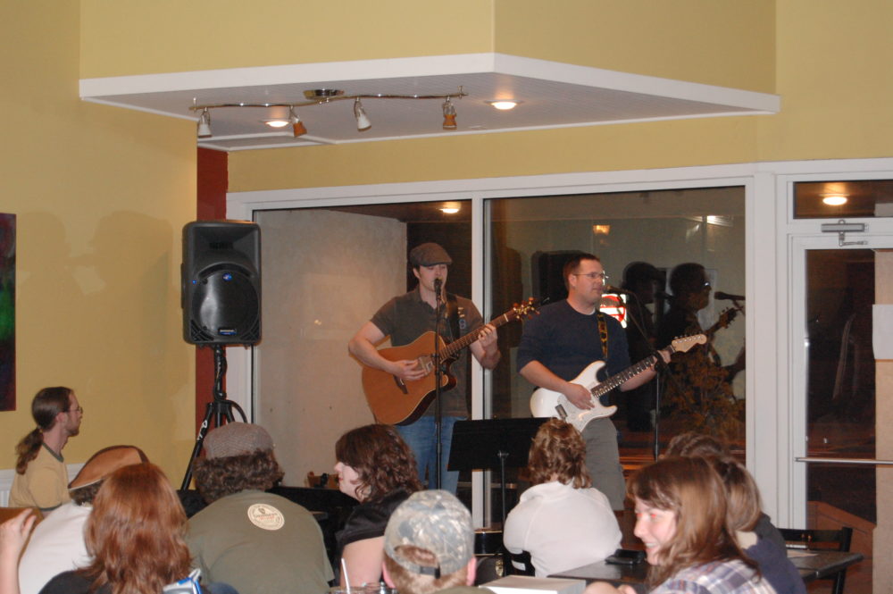 Tonight, I hopped into Cottonwood coffee shop in Brookings, SD for my dose of mocha. I had no intention of staying late. However, my attention was caught by the brothers duo – Evan Delaney and Tristan Delaney – who were performing inside the shop for the annual open-mic event. Both brothers could play the guitar and sing beautifully at the same time. I mean, they do not possess ordinary-sounding voices, but something more of recording-quality that may give pro singers a run for their money. Listen to the blending of their voices and it will make you thirst for some more.