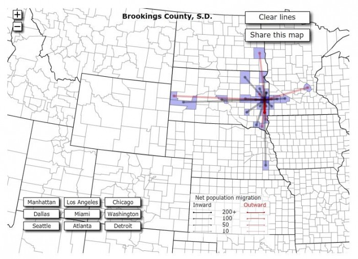 The map looks crappy and no numbers were given. But this is enough to give us a general idea of the migration happening in Brookings.