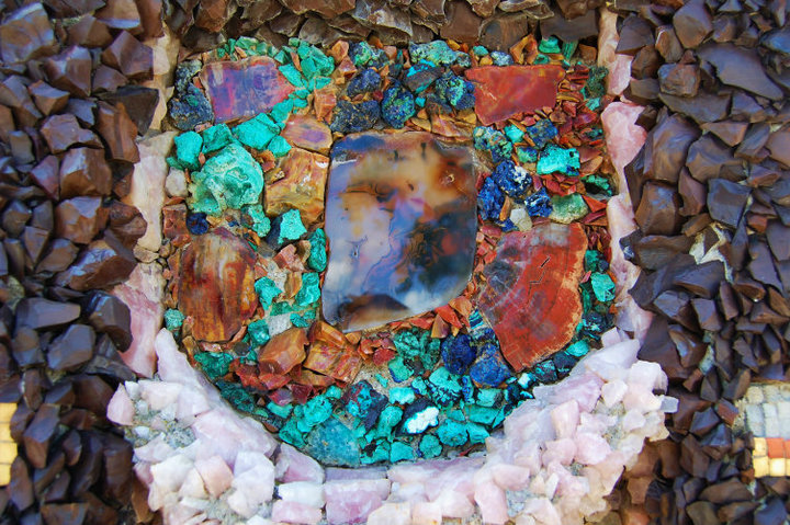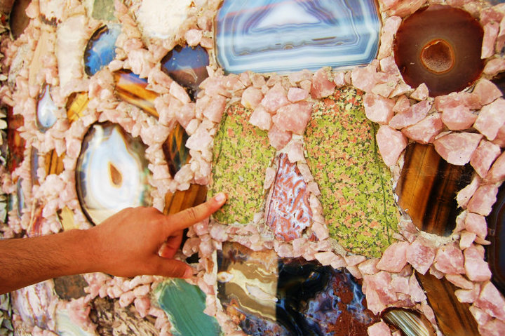 It is made of rocks, gemstones, corals, etc. from all over the world.