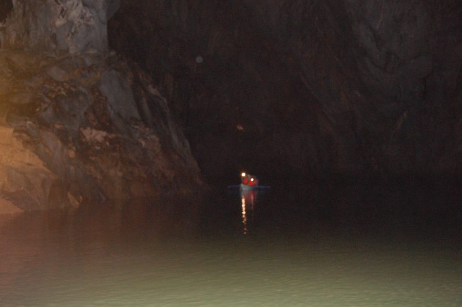 Once it was our turn to ride the boat, we were all excited. The cave’s dark — like pitch dark!