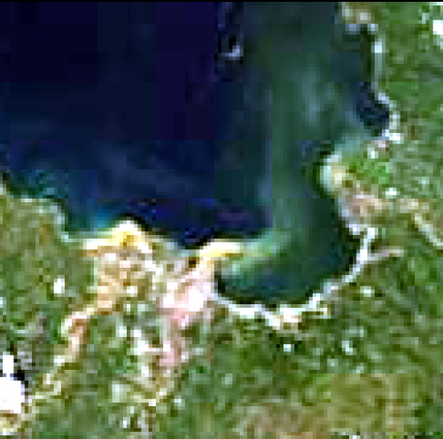 The before-image was acquired on December 12th. The after-flooding image was taken on December 19, 2011. At first sight, it is obvious that the rivers that run both Cagayan de Oro and Iligan cities have expanded in width with clear presence of brown sediments after the deadly flooding. It is also evident from the December 19 image that sediments have accumulated into the sea floor.