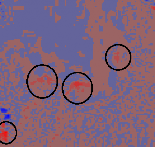 Most of the land surface changes happened near the shoreline, near rivers and on populated areas (I encircled those changes). These are the same locations where most deaths and injuries were reported.