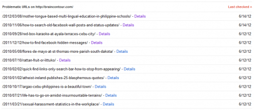I spent time finding help from stopbadware.org on how to identify badware behavior and how to remove them. Specifically, I looked for malicious scripts that are often used to redirect visitors of my site to a malware-infected website. Then I thought of the Infolinks script I added few days ago. The date when I added it, matched the date that’s listed on Google Webmaster Tools when it detected the infected pages on June 12, 2012!
