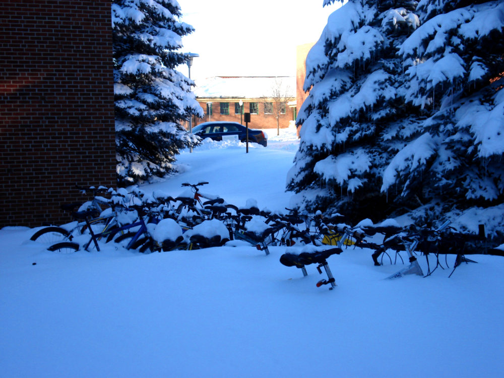 “I was all alone in my journey. Although the visibility was low, I could still see a car crossing an intersection 5 blocks away. And that was the only moving thing I saw the entire trip. Around the first bend, my enthusiasm began to retrograde. A huge pile of snow, courtesy of the Brookings snow plowing trucks (thank you!), hindered my tracks. I took a deep breath and held my cool. I crossed the street and transferred to the opposite sidewalk. The farther I went, the worse the sidewalks became.”