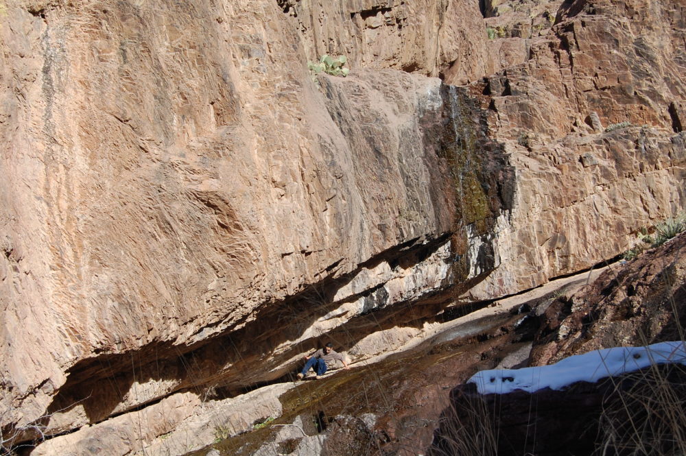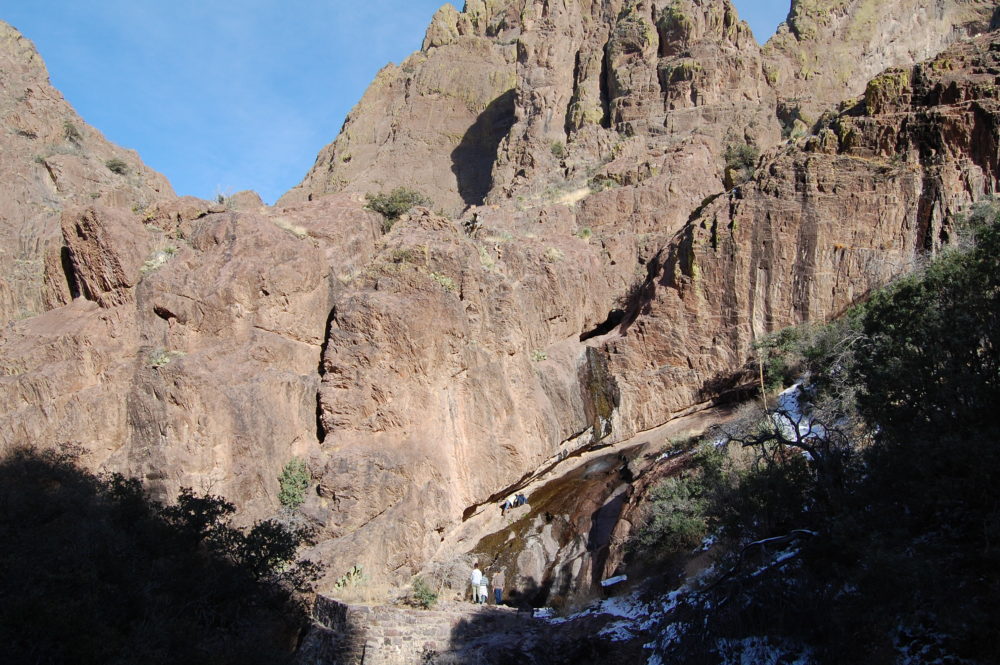 A couple of hundred meters away, I reached the dripping springs. Look closely on the photos below, you see people climbing up the rocks to get closer to the water drippings. The water is unfit for drinking, though. The reservoir behind the rocks used to supply water to the nearby Dripping Springs Hotel.