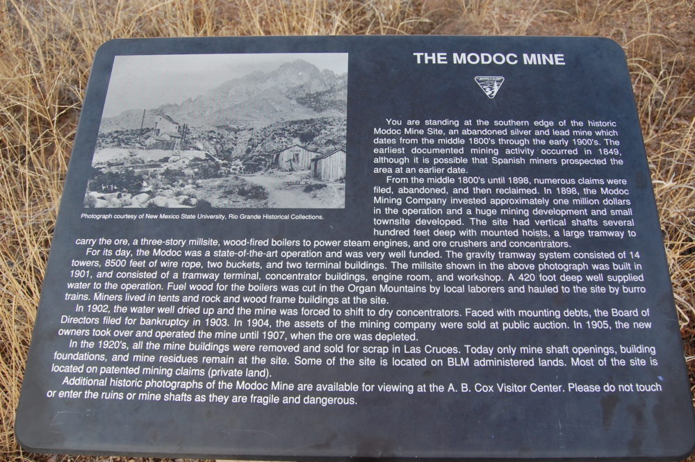 Nearing the end of the Crawford trail is the boundary of the Modoc Mine. According to the sign, “it is an abandoned silver and lead mine which dates from the middle 1800s through the early 1900s. The earliest documented mining activity occurred in 1849, although it is possible that Spanish miners prospected the area at an earlier date.”