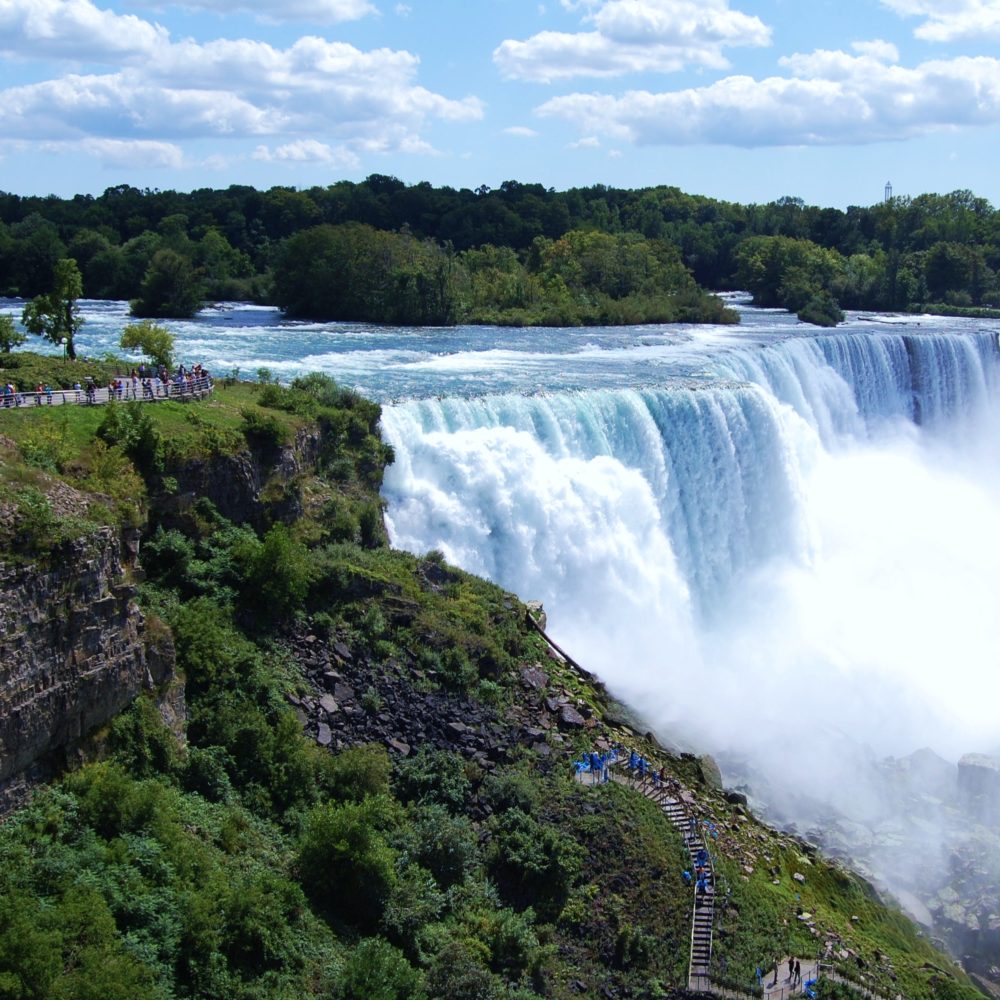 Niagara Falls is a world-renowned natural wonder located on the Niagara River, which separates Ontario, Canada and New York State, USA. It is comprised of three waterfalls: Horseshoe Falls, American Falls, and Bridal Veil Falls. Collectively, these falls have become one of the most popular tourist destinations in North America, attracting millions of visitors each year.
