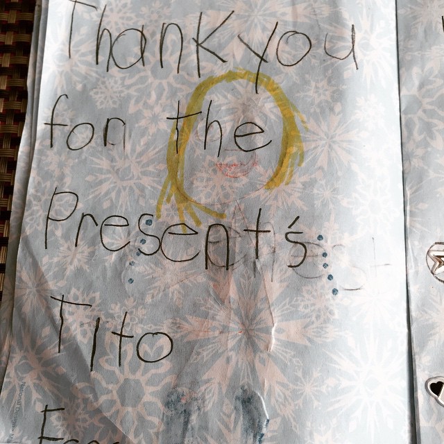 When she ran out of thank you ideas, happy Elsa (from the movie Frozen) saved a page.