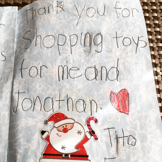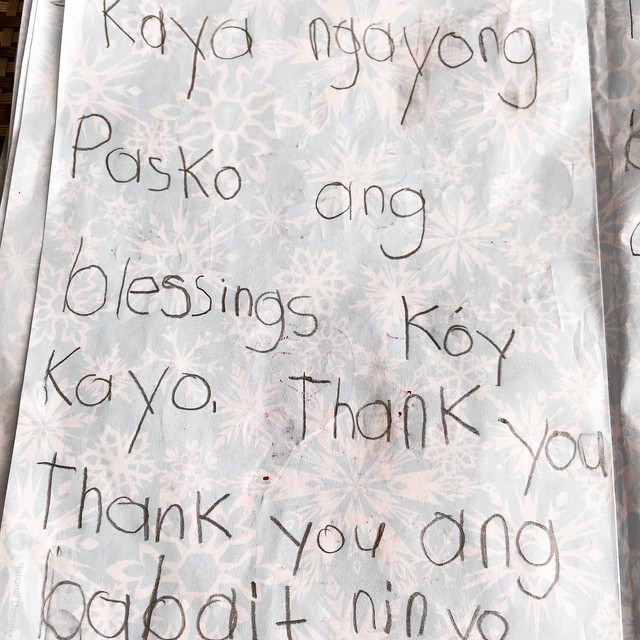 I never thought she could even write in Filipino! “Kaya ngayong Pasko, ang blessings koy kayo, thank you thank you, ang babait ninyo.” This was the Christmas anthem of a Filipino TV station, ABS-CBN, that she often heard whenever my sister watched Filipino TV shows. The song translates to “So this Christmas, you are my blessings, thank you, thank you, you are so kind.”