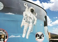 I drove by the Space Murals Museum in Organ, New Mexico a number of times, but never decided to stop and check it out. From the road, the museum is just like any small residential structure in the area. Nothing spectacular. Until you go inside.
