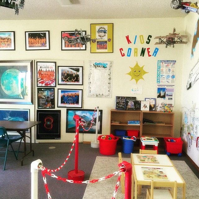 Outside lay a number of rocket artifacts and a model of NASA Challenger.