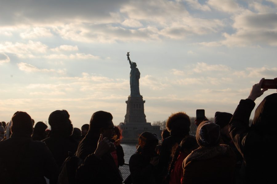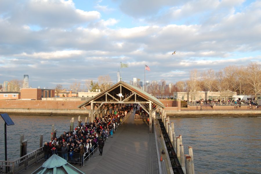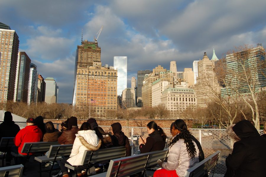 Departing from Battery Park, visitors went straight up to the top level of the ferry to get a good view of the city and the monument.