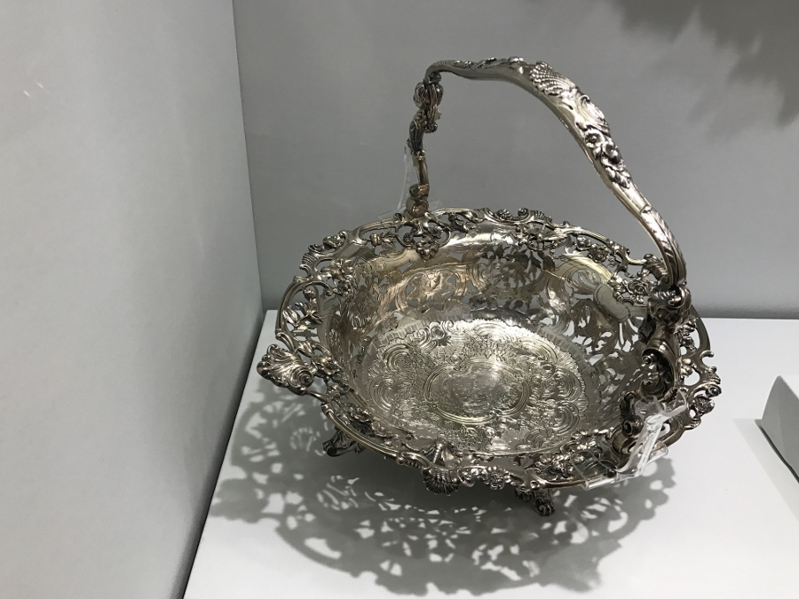 Baroque silver is boldly shaped or massive in size, rigidly symmetrical in design, and richly ornamented. The newer rococo style featured looser, asymmetrical design, and naturalistic imagery of animals.