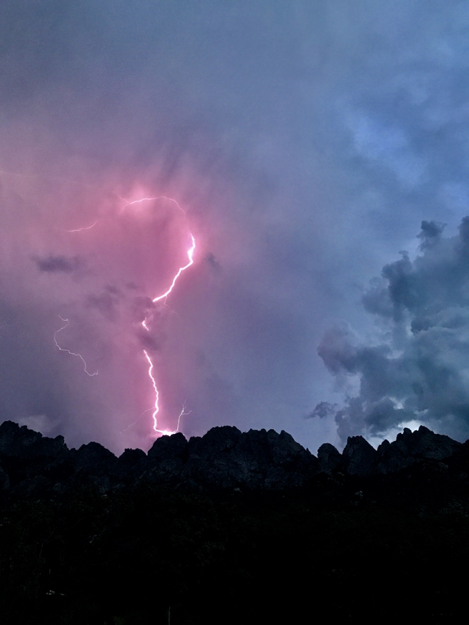 When I was there, there was a little thunderstorm and the mountains turned into a light spectacle.