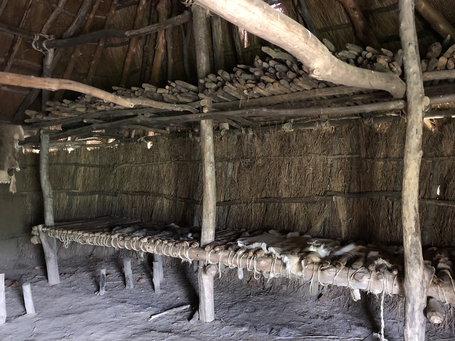 The village was completely enclosed by a wooden stockade. Archaeologists could not agree whether the stockade was for defense or for keeping wild animals away from stored food.