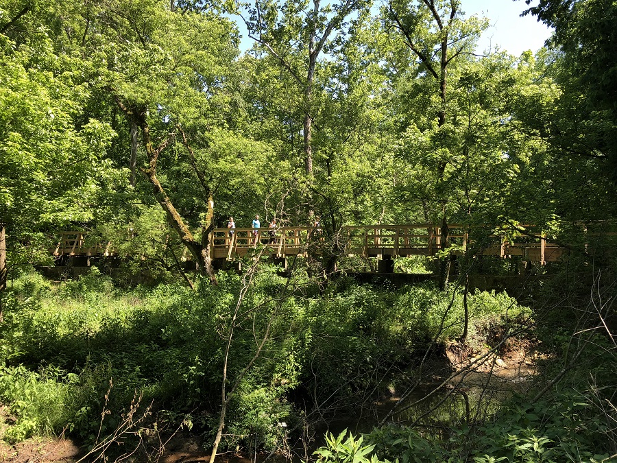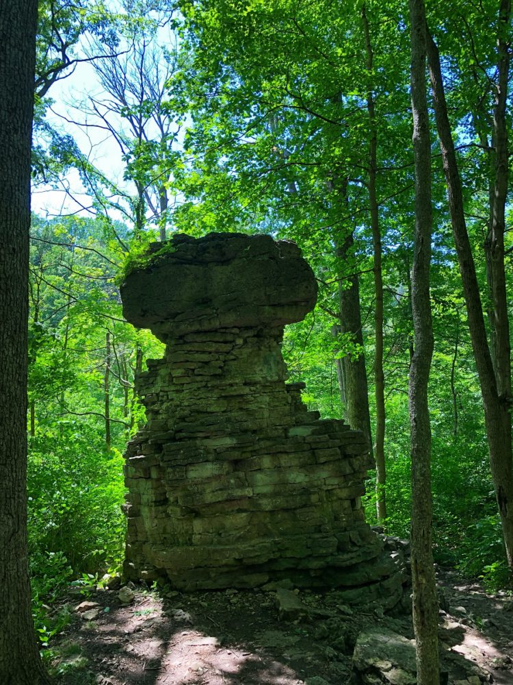 The mile long Inman trail inside Glen Helen Nature Preserve in Yellow Springs, Ohio loops around beautiful natural sights and scenes. Located in the northern section of the privately-owned 1000-acre nature preserve, Inman trail offers hikers a beautiful walk through the woods, with stops at a cascading waterfall, a stone monument, a towering rock formation, an old dam, and even a small museum. Although it is easy to walk for the most part of the path, there are segments that could be a challenge for those with limited mobility. For instance, you need to go down a hundred rock steps to the valley floor.