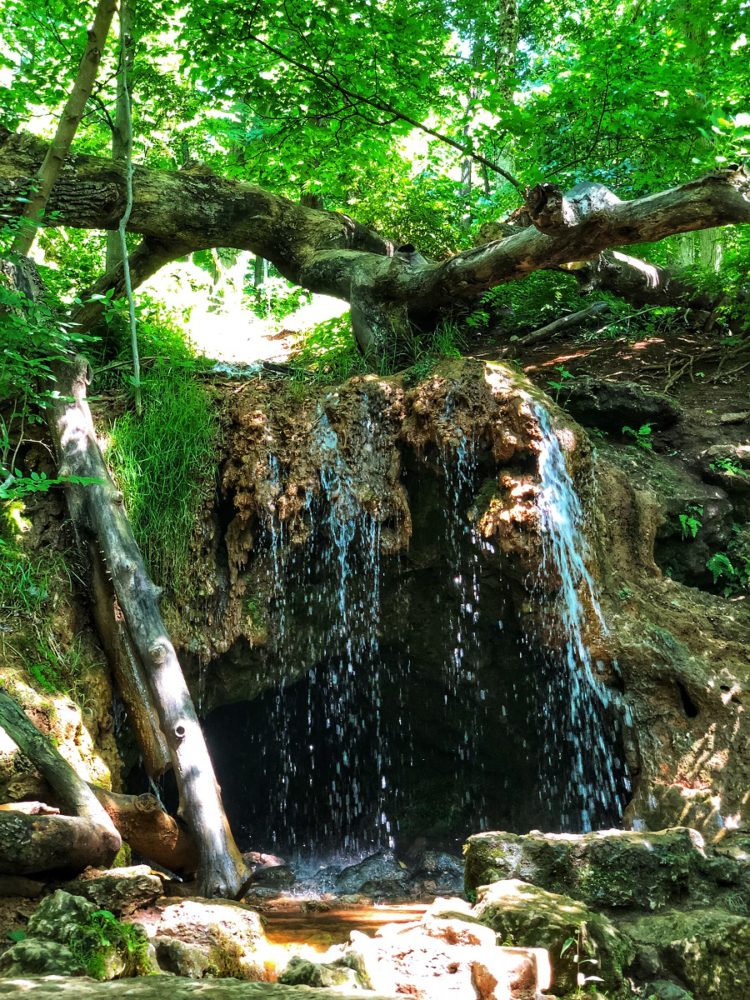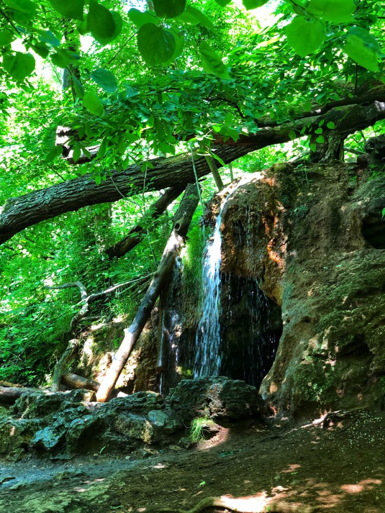 A small waterfall coming off the top of the reddish travertine mound forms the Grotto. The waterfall is hard to miss. This is the first of the three waterfalls along the trail. This isn’t big at all. But it is nice to see this, especially that the water from the Grotto crosses right through the trail.
