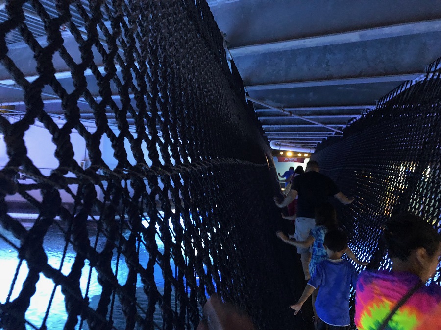 One of the attractions was the shark bridge. But honestly, this bridge was nothing but a rope bridge that crosses a shark tank. The people simple walked through the bridge (and there was no sign of shark!). If there was a shark, I would not see it or enjoy the experience because the design of the rope bridge wouldn’t allow me to do so. Also, I could not just stop in the middle of the bridge, peek through the holes and wait for sharks, and let a tight line of people behind me wait.
