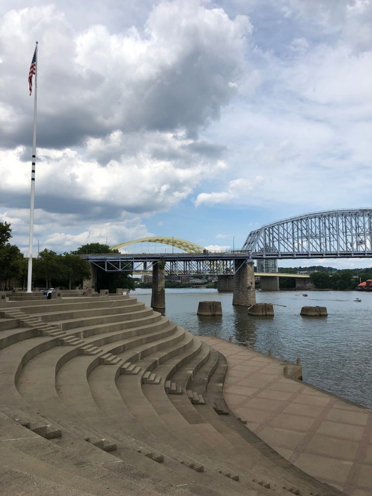 Near the Purple People Bridge on the side of Cincinnati, Ohio is the Serpentine Wall. The huge wall consists of steps that form the boundary to the Ohio River at Yeatman’s Cove. Although the wall is used to protect the city from the rising water levels in the river, it is also used as bleachers by visitors and park-goers who may just want to relax and enjoy the surrounding view.