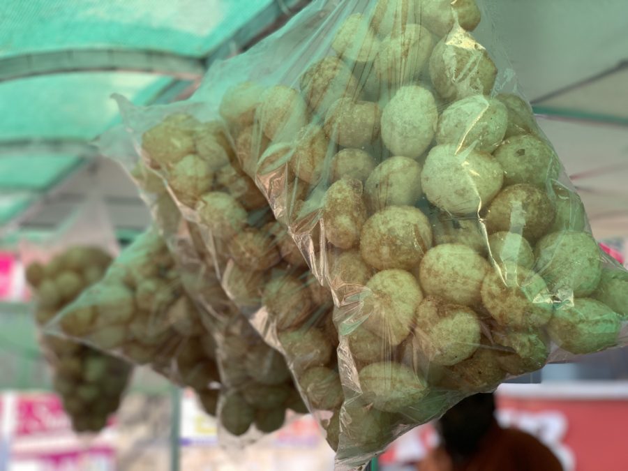 The Indian Panipuri is a popular snack that one could easily find on the streets of India. It is a deep-fried crisp crepe that is prepared hollow for veggie fillings. Fillings could contain potatoes, onions, chickpeas, chili, and a sour liquid from tamarind and flavored water known as “pani.”