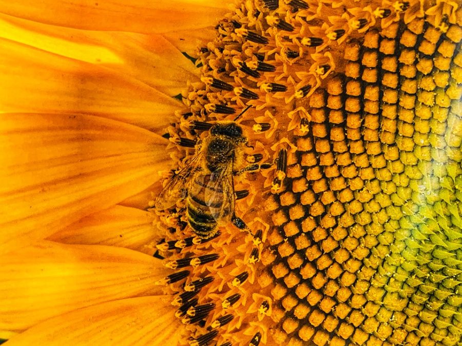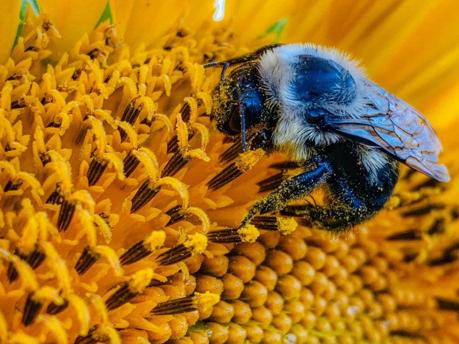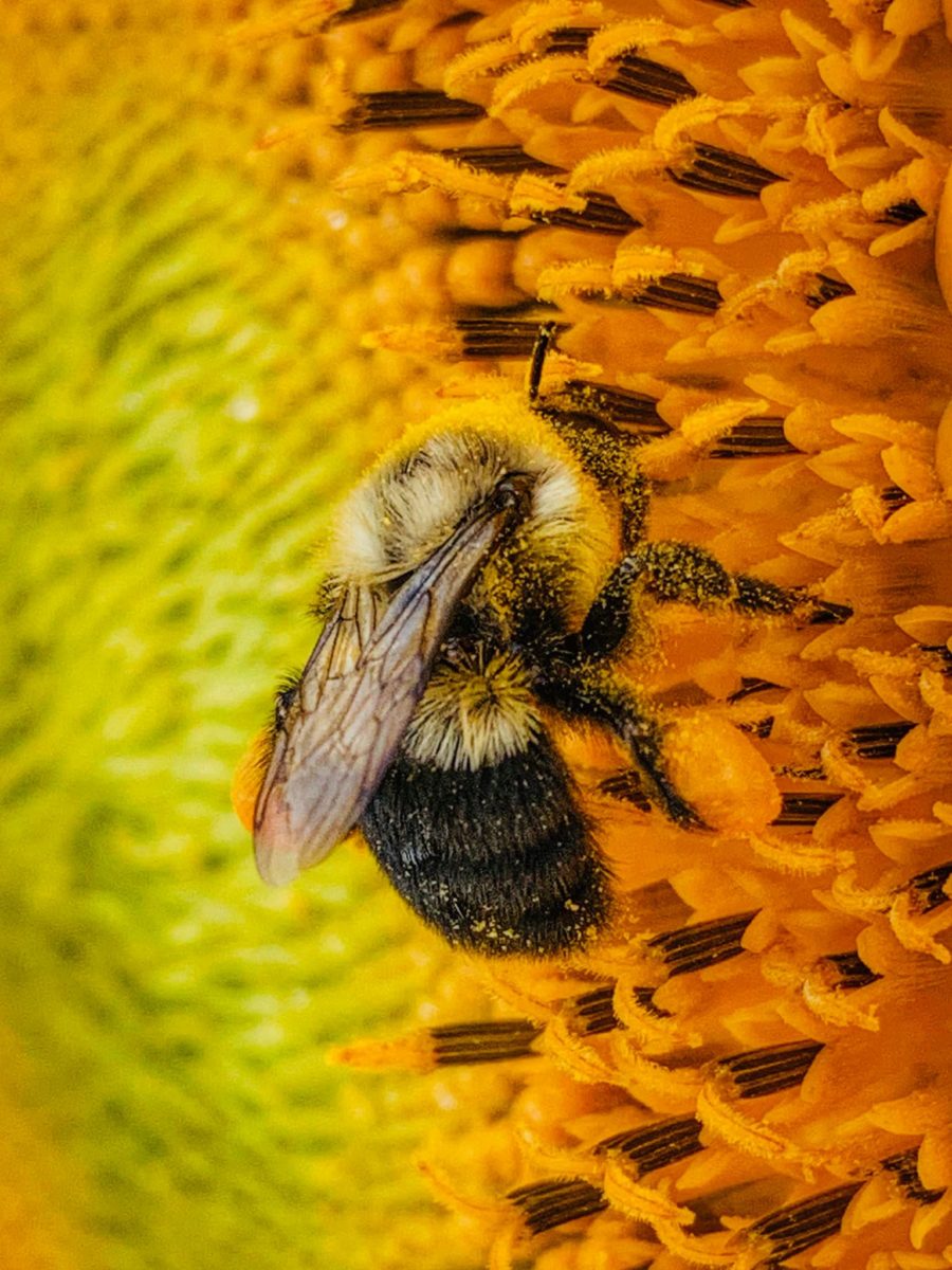 I captured the little miracle creatures that were busy pollinating, flying from one flower disc to another, undisturbed by humans taking selfies. These pollinators and the flowers have a symbiotic relationship. The pollinators help increase confection sunflower production, and in return, the sunflower pollen helps bees by making them more resistant to infection.