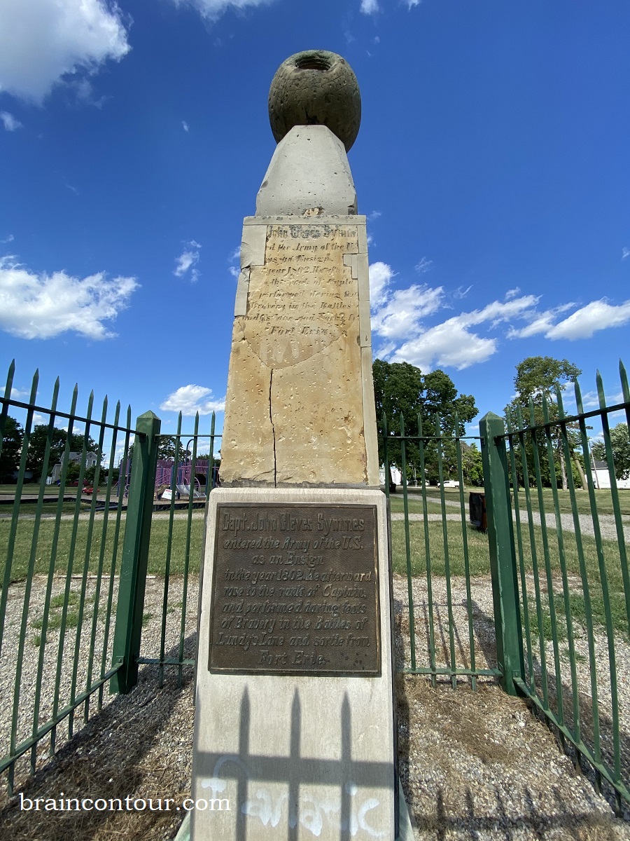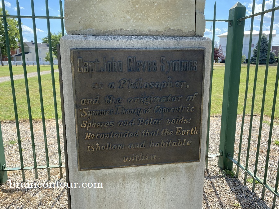 The monument is the gravesite of Capt. John Cleves Symmes, an 1812 war hero. He was also a philosopher; he even came up with the Theory of Concentric Spheres and Polar Voids. He believed that the Earth is hollow at the North and South Poles and that it is habitable within.
