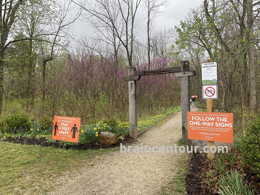 Due to COVID restrictions, the mile-long garden trail was only one-way. The trail goes through various landscaped gardens, then through the woods and a prairie.