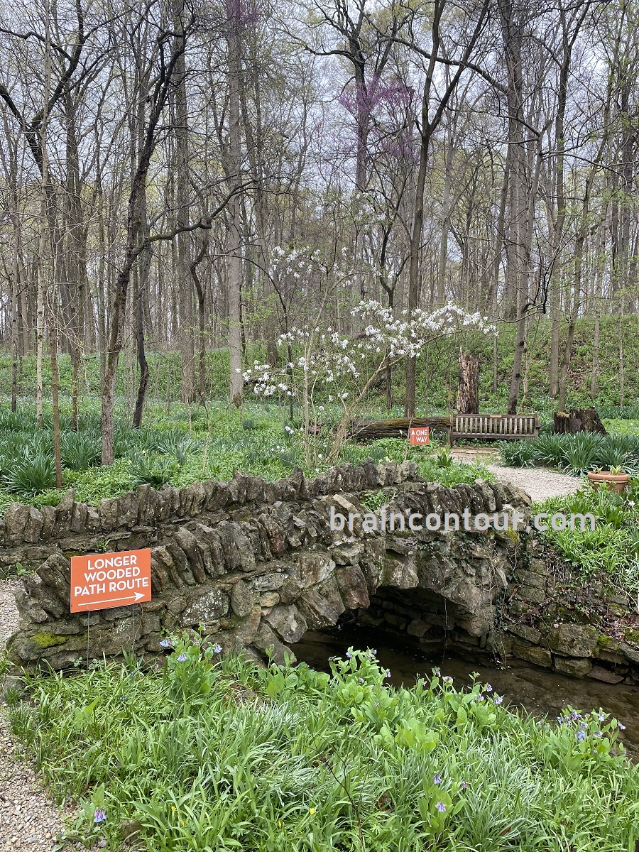 The Aullwood Garden MetroPark along Wiles Creek in Dayton Ohio is one of the best public garden parks in the area. I visited during the Spring season when the flowers on the forest floor were starting to bloom and were beautiful. There were daffodils and Virginia bluebells! I was told that the Lilac Lawn blooms in May, while the red buds and peonies in June.
