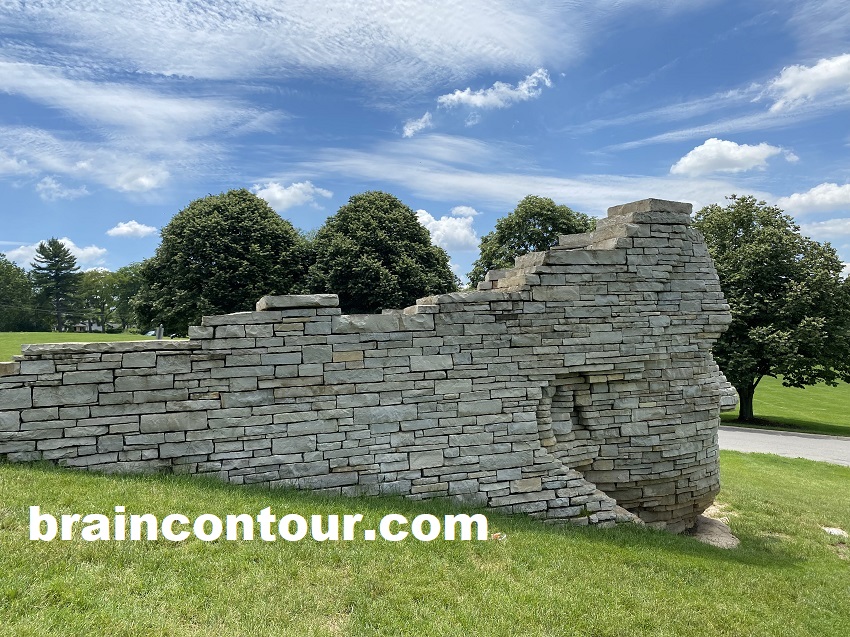 The monument made of native limestone was erected in 1990 and it overlooks Scioto Park.
