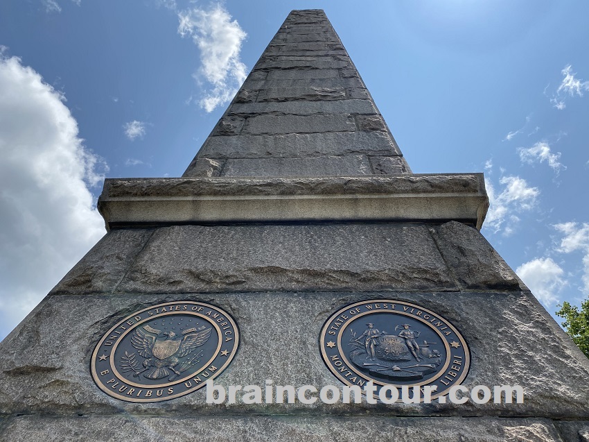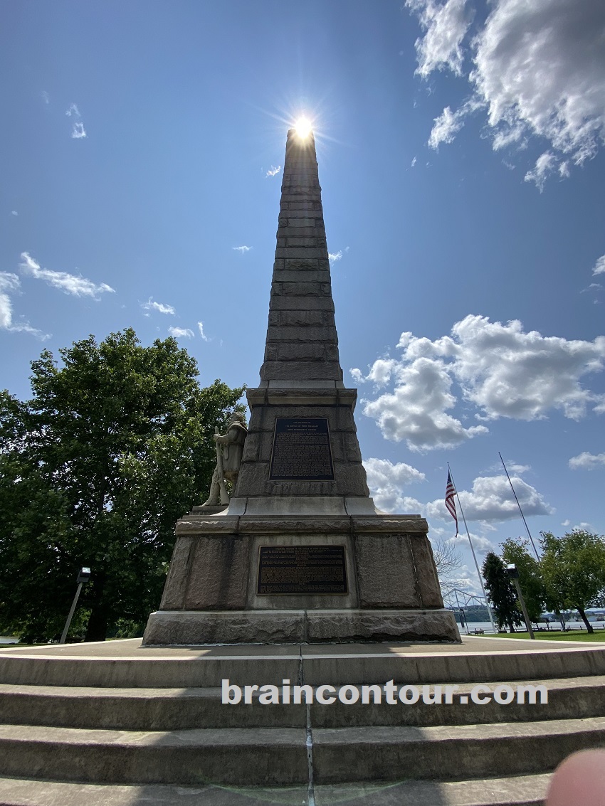 To commemorate the battle of Point Pleasant, West Virginia, the Battle Monument was erected in the year 1909. The battle occurred at the mouth of the Great Kanawha River on October 10, 1774, between Virginia colonial troops and the warriors from the United Indian Nations (Shawness, Delawares, Mincoes, Wyandottes, Miamis, and Ottawas). The battle was the most important battle ever waged between the forces of civilization and of barbarism in America.