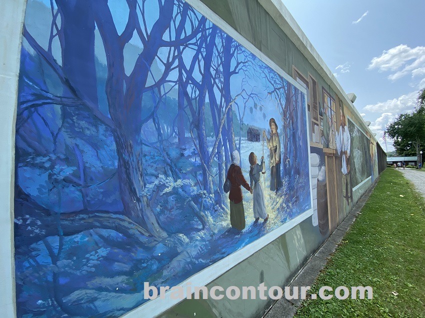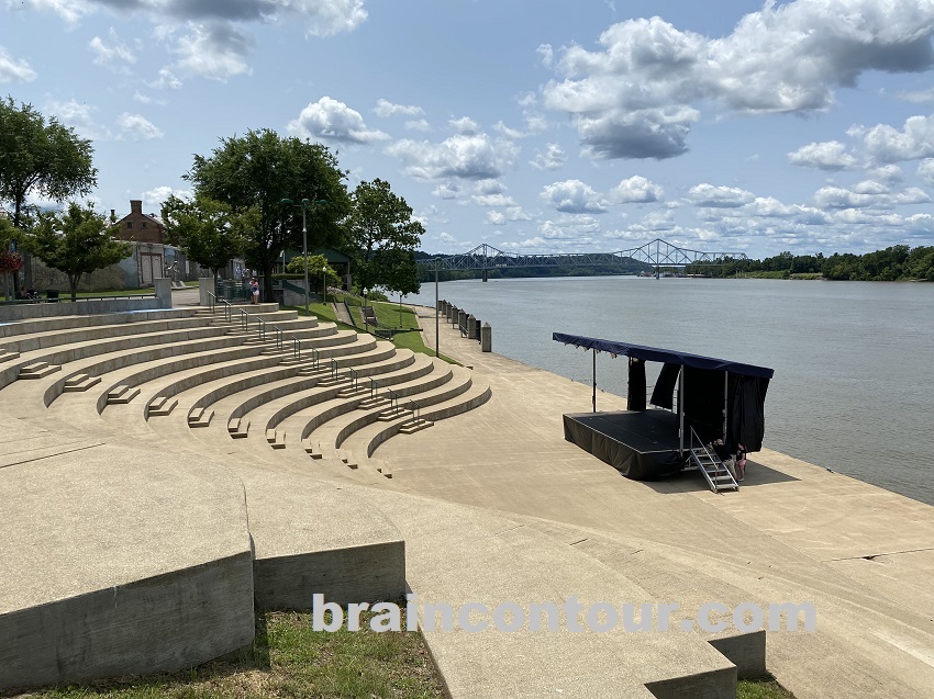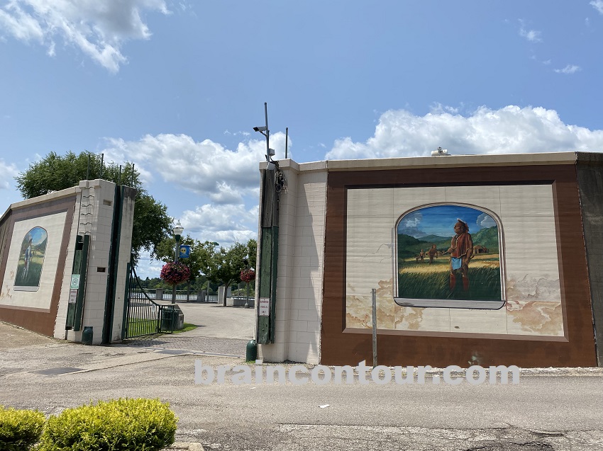 The riverfront boasts a huge amphitheater-style stair facing the scenic Ohio river. Separating the riverfront from the busy town is a tall wall that is painted with murals. You can follow the half-a-mile path along the wall to get into another park where the Point Pleasant Battle Monument stands.