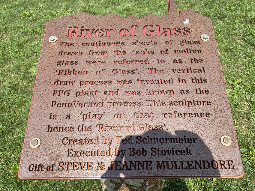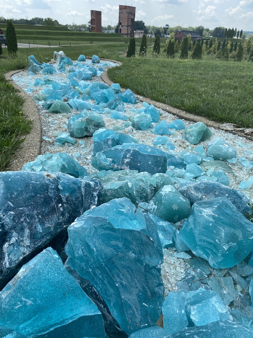 One of the unique features of Ariel-Foundation Park in Mt. Vernon, Ohio is the River of Glass. The art installation was constructed to pay homage to PPG Works No. 11, honoring the significant contributions of the family members who worked for PPG Glassworks.