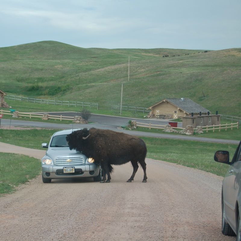 The highlight of the Wildlife Loop is, of course, the chance to see animals in their natural environment. As I drove along the road, it didn’t take long to spot the first bison grazing near the roadside. Seeing these massive creatures up close was both awe-inspiring and humbling—they truly are the kings of the prairie. At one point, a small group of bison crossed the road right in front of my car, giving me a front-row seat to their slow, deliberate movements.