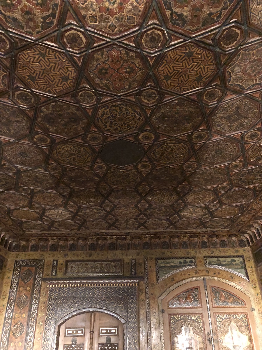Syrian craftsmen created a room with walnut paneled walls that frame a series of elaborate painted doorways, cupboards and shuttered windows. The decoration is typical of the Ottoman decorative style,...