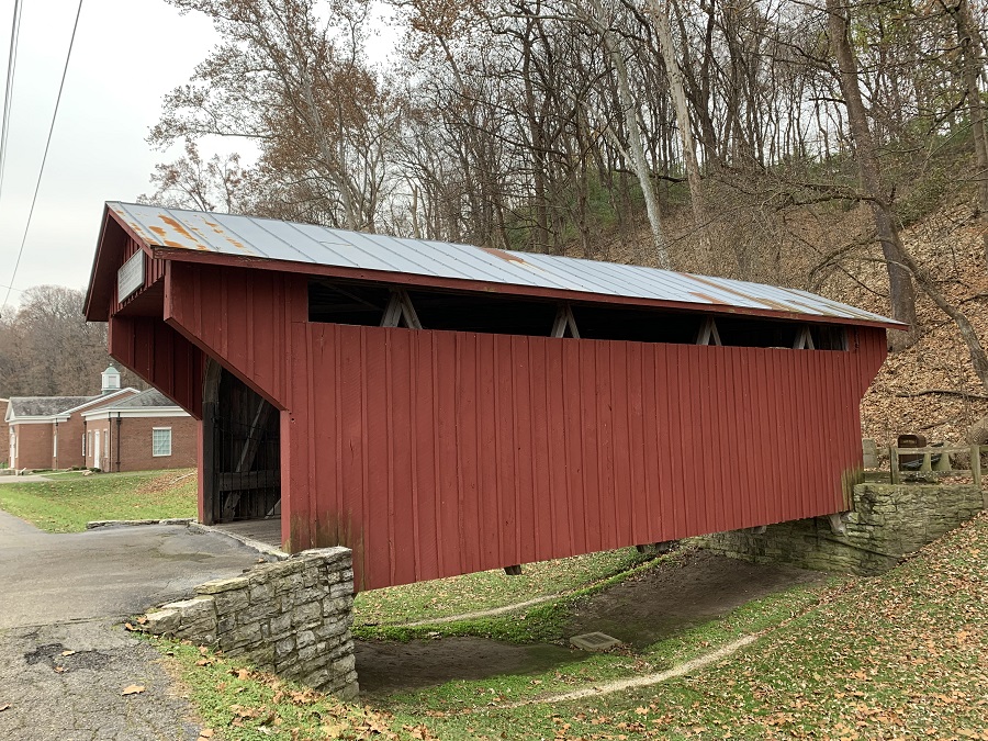 This Smith Covered Bridge was built in 1870 by Robert W. Smith of the Smith Bridge Company in Toledo, Ohio. It utilizes a series of elongated triangular frames known as the Warren truss system. The ar...