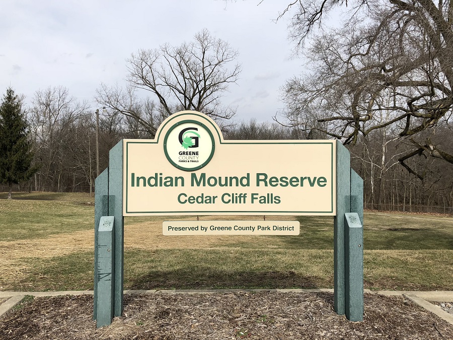The Adena Mound is inside the Indian Mound Reserve, a much bigger park that is managed by Greene County Parks & Trails. The Adena Mound was built approximately 500 B.C. Mounds such as these were u...
