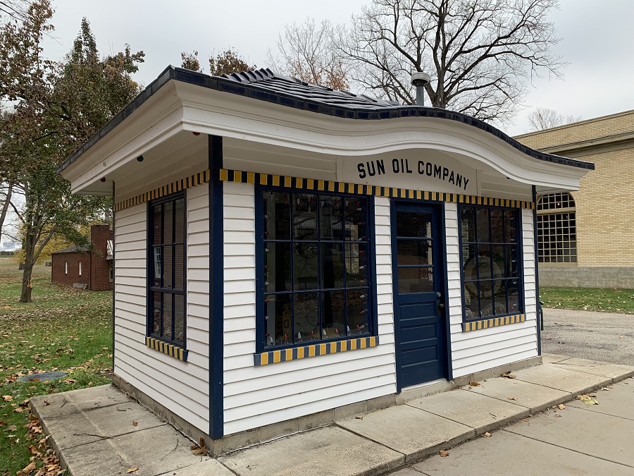 This 1924 Sun Oil Station is located at Carillon Historical Park in Dayton, Ohio. With a pagoda-style roof and blue and yellow color scheme, Sun Oil or Sunoco, was among the first companies to standar...